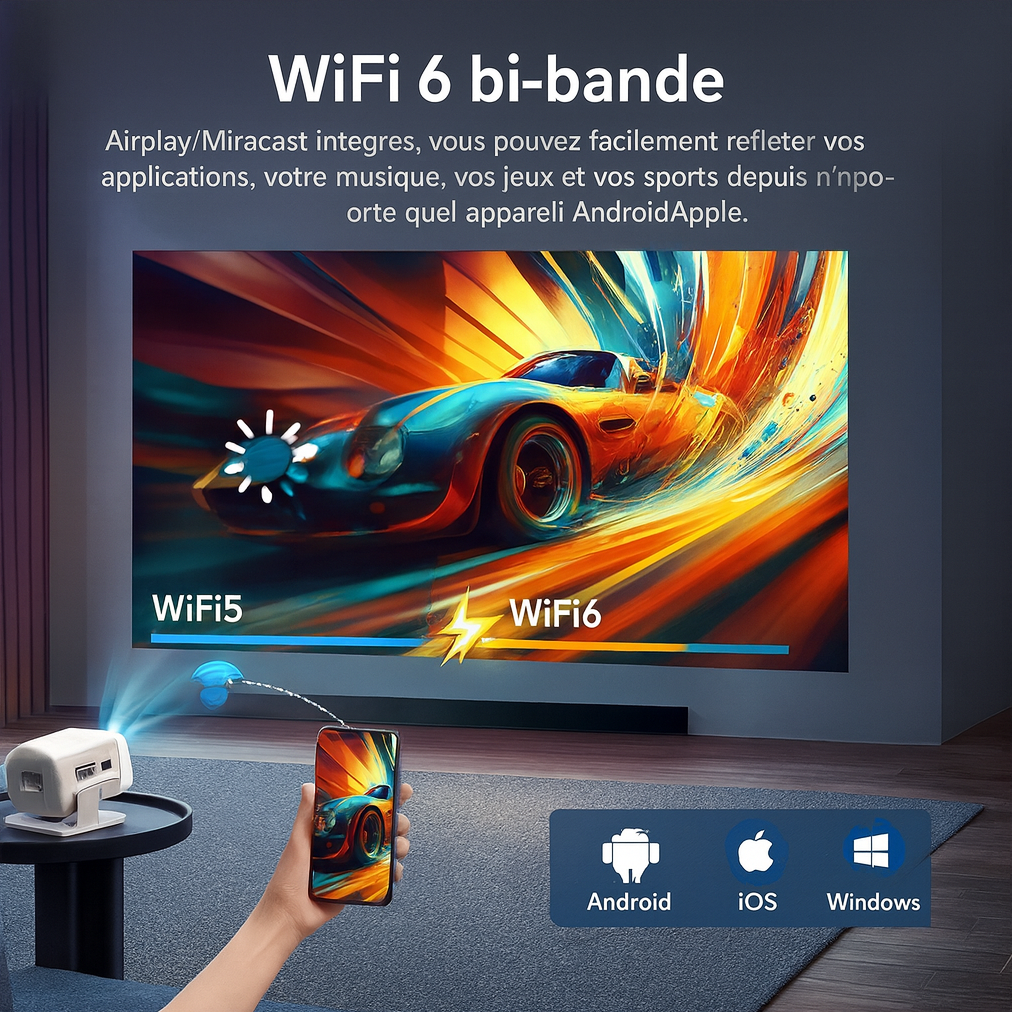 Diffusez vos films, séries ou présentations sans le moindre câble grâce à la compatibilité AirPlay et Miracast, pour une expérience fluide et sans latence.